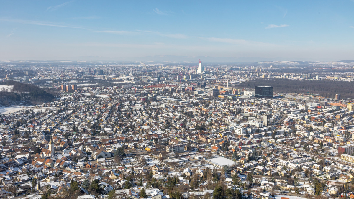 Blick von Pratteln auf Basel. (Quelle: Martin Huber)