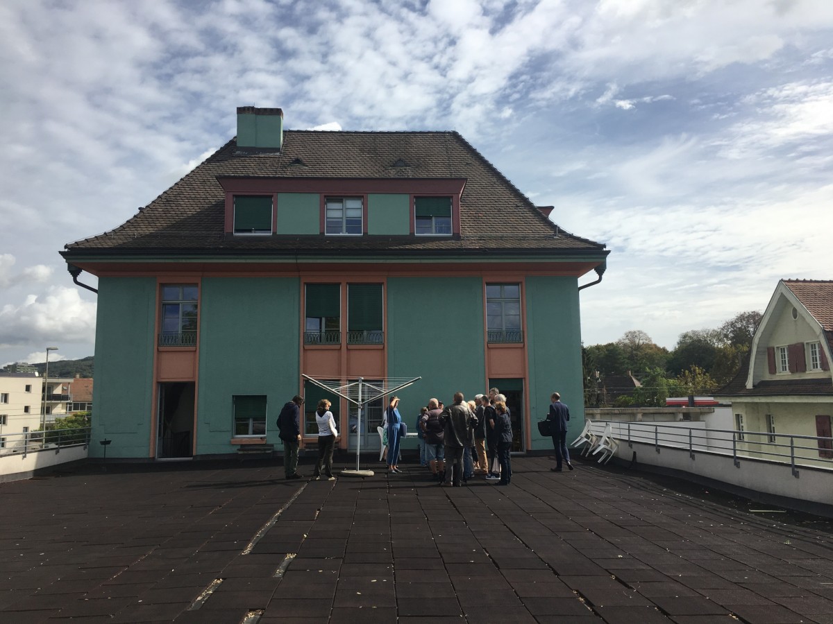 Brigitte Frei-Heitz, kantonale Denkmalpflegerin, führte die interessierten Besucherinnen und Besucher durch das im Jahr 1927 eröffnete erste Kino im Baselbiet. In den 1950er Jahren wurde es leicht umgebaut und erhielt ein elegantes Vordach und den neuen Namen Roxy. Das Roxy steht seit dem Jahr 2008 - auf Betreiben der Eigentümer - unter Schutz. Die Leute waren sehr interessiert an der Führung und freuten sich, hinter die Kulissen des Roxy blicken zu dürfen. Sie durften eine der Wohnungen besichtigen, auf der riesigen Terrasse stehen und von dieser ungewohnten Perspektive auf Birsfelden schauen. Für Brigitte Frei ist das Roxy ein gutes Beispiel dafür, dass dank überlegtem Handeln und einem gemächlichen Tempo auch mit wenig zur Verfügung stehenden finanziellen Mitteln der spezielle Charme des Hauses erhalten geblieben ist. Heute ist das ROXY Veranstaltungs- und Produktionsort für die freie, zeitgenössische Theater-, Tanz- und Performanceszene.
