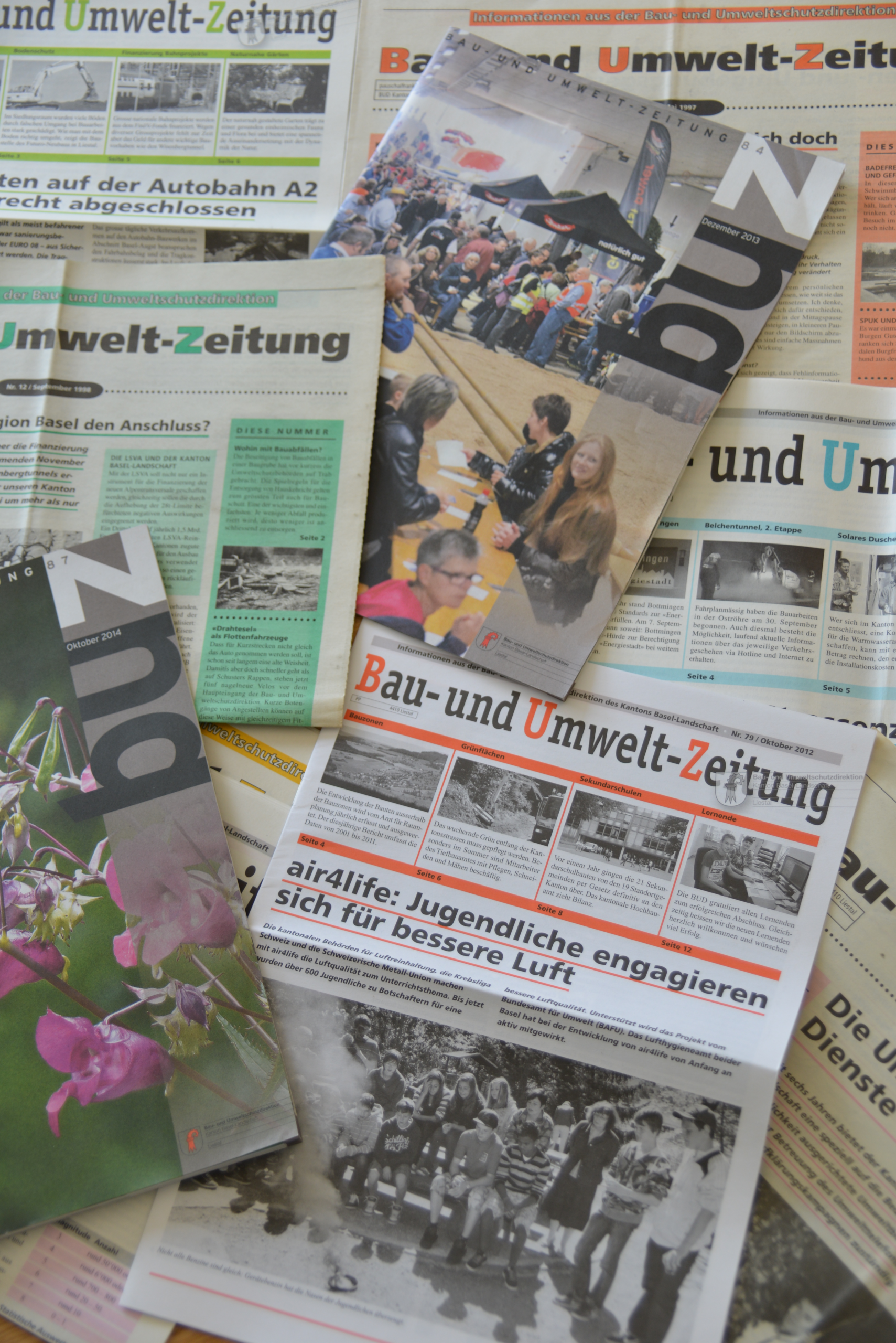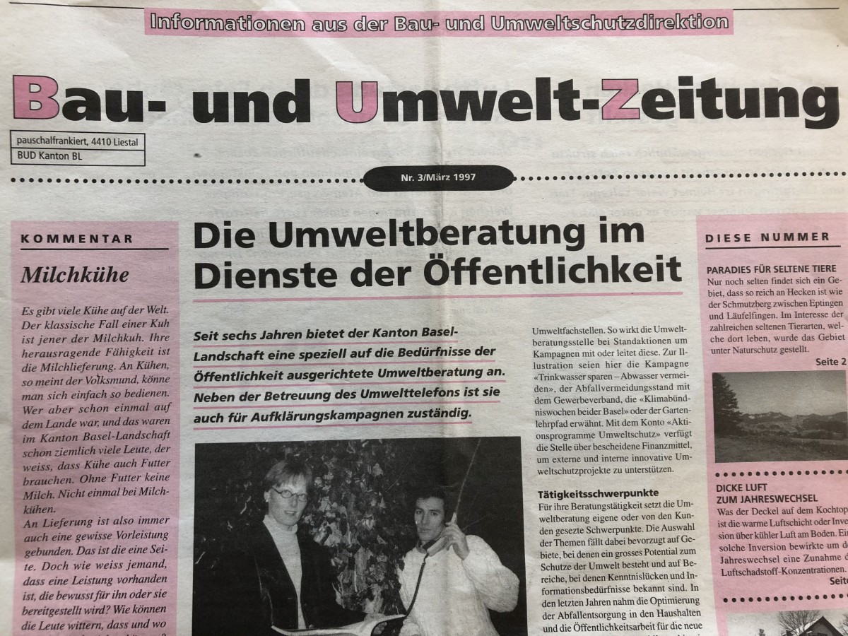 Alles begann im Herbst 1996, als die BUZ Nr. 1 erschien. Die Themen waren von Anfang an vielfältig. Die erste BUZ berichtete über Themen wie: Lösemittelemissionen aus Druckereien, die Bestandsaufnahme des Eggfluetunnels, Ohrenschäden bei Jugendlichen durch Lärm, den Rückbau der ARA Birsig, Ozonspitzenwerte und vielem mehr. Einige Mitarbeitende der BUD haben in den vergangenen 22 Jahren regelmässig interessante Texte und Neuigkeiten zu ihrem Fachgebiet verfasst. Das Tiefbauamt berichtete jährlich über die Entwicklung des Strassenverkehrs und das Lufthygieneamt fasst jedes Jahr die Luftqualität zusammen und berichtet über die Ozonwerte im Sommer, wie auch in dieser 100. Ausgabe wieder.