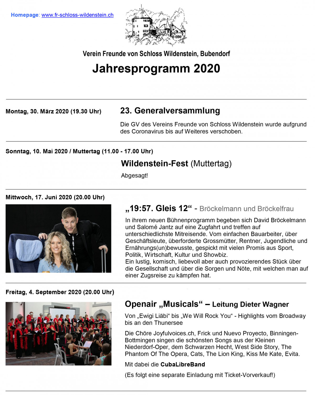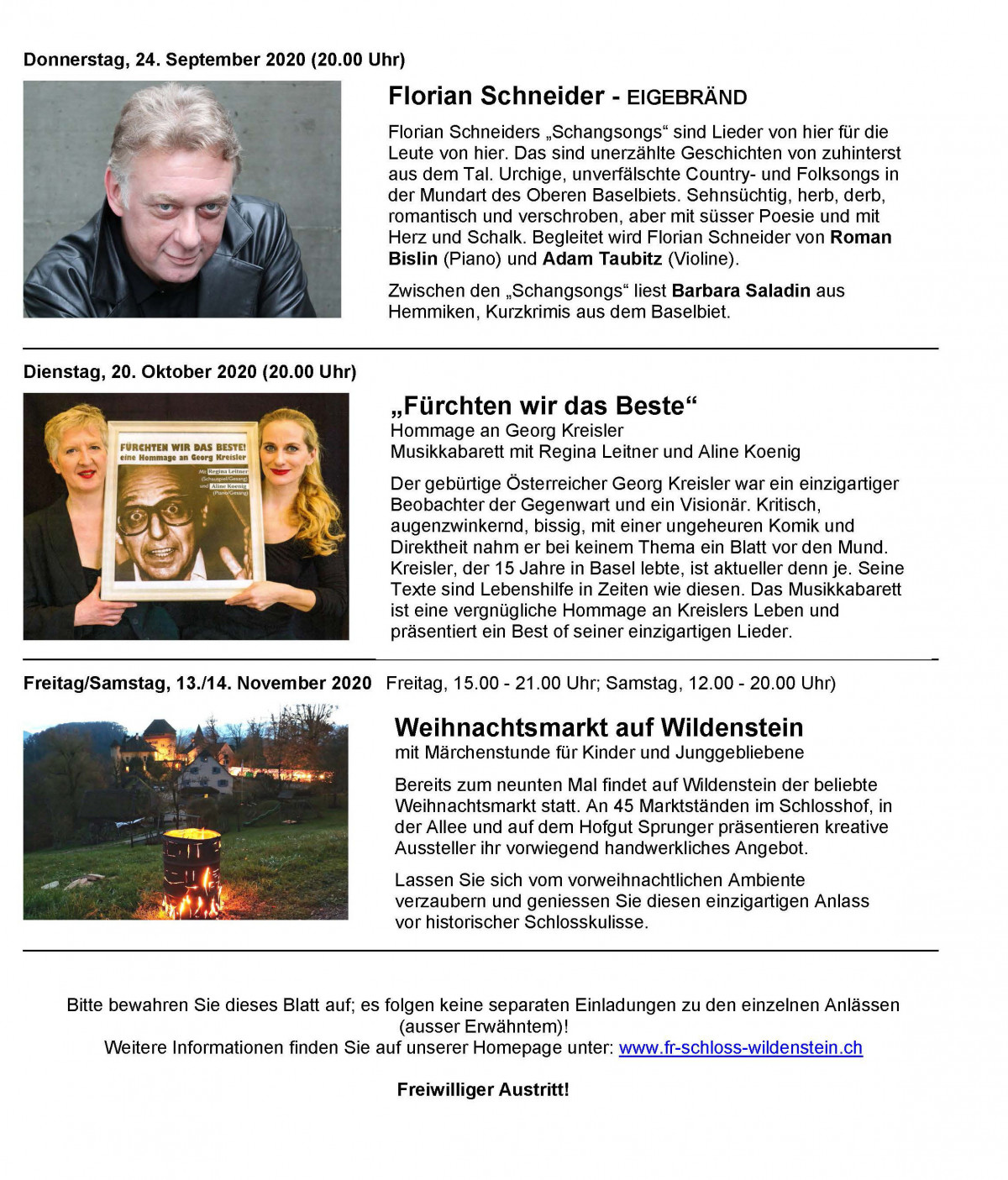 Verein Freunde von Schloss Wildenstein: Jahresprogramm 2020