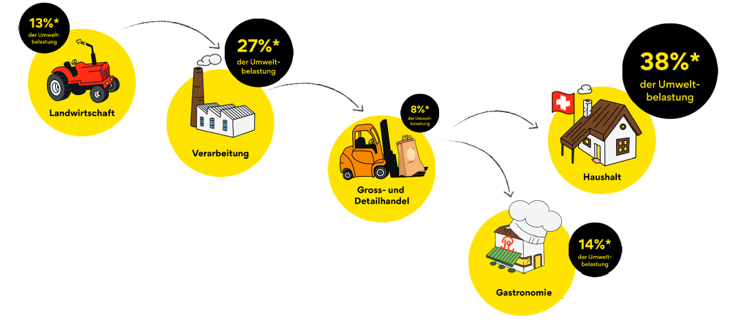 Wenn Lebensmittel hergestellt, aber nicht konsumiert werden, wird die Umwelt unnötigerweise belastet. In der Schweiz verursacht die Ernährung rund 30 Prozent aller Umweltbelastungen. Rund 25 Prozent dieser Belastungen im Bereich Ernährung sind auf Food Waste zurückzuführen. Die Initiative «SAVE FOOD, FIGHT WASTE.» zeigt auf, wie einfach und lustvoll Food Waste reduziert werden kann.