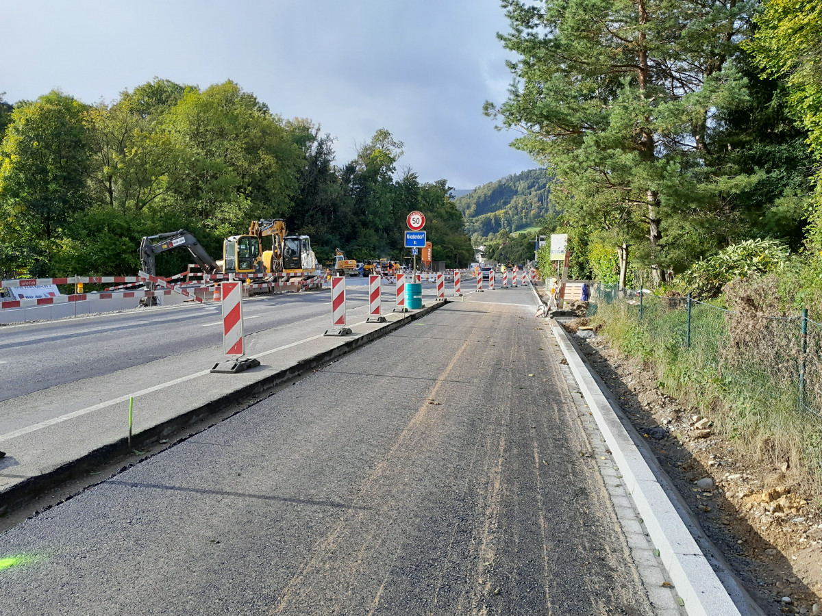Die Instandstellung der Kantonsstrasse im Bereich Hirschlang in Niederdorf kurz vor dem Abschluss (Quelle: TBA)