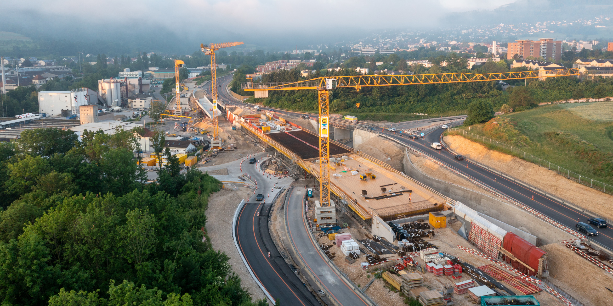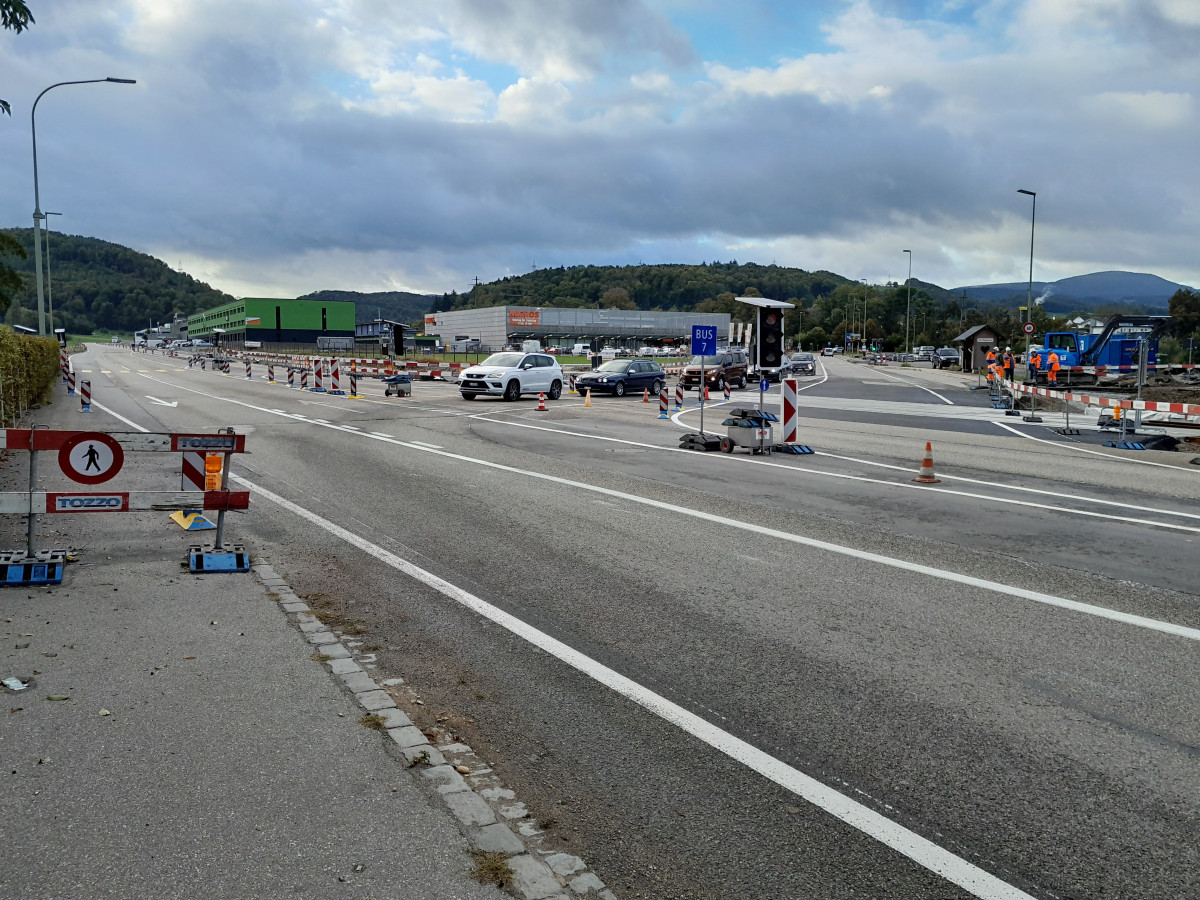 Verkehrliches Nadelöhr, Knoten Bad Bubendorf. Mit flexiblem Verkehrsdienst soll der Verkehr auch in den Spitzenzeiten an der Baustelle vorbeigeführt werden (Quelle: TBA)