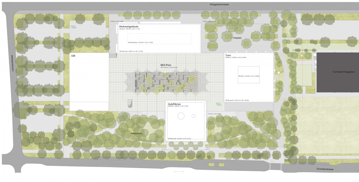 Auf Basis des siegreichen Wettbewerbsentwurfs wurde auch der Quartierplan «Chriegacher 1» finalisiert. Die Quartierplanung stellt die planungsrechtlichen Voraussetzungen her, um die Überbauung für Schulnutzungen mit arealspezifischen Zielen umzusetzen. Der Regierungsrat hat Ende Juni dieses Jahres die von der Einwohnergemeindeversammlung Muttenz beschlossenen Quartierplanvorschriften «Chriegacher 1» genehmigt.