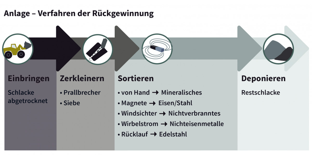 Die Verfahrensschritte der Metallrückgewinnung aus dem Siedlungsabfall (Quelle: Anex & Roth)