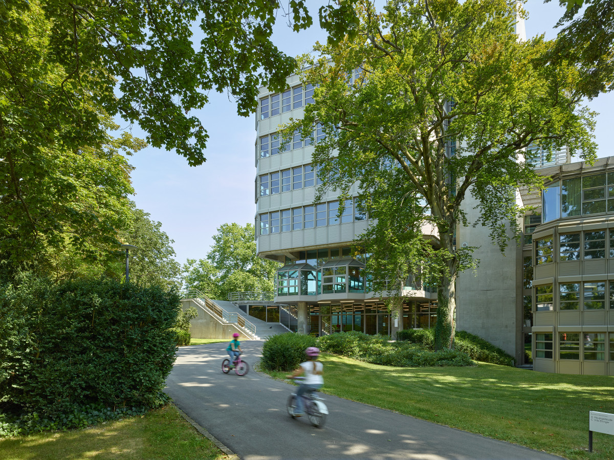 Blick aus Südwesten gegen Nordosten mit Aula-Mediathek-Gebäude und Turmgebäude (Quelle: Berrel Berrel Kräutler AG)