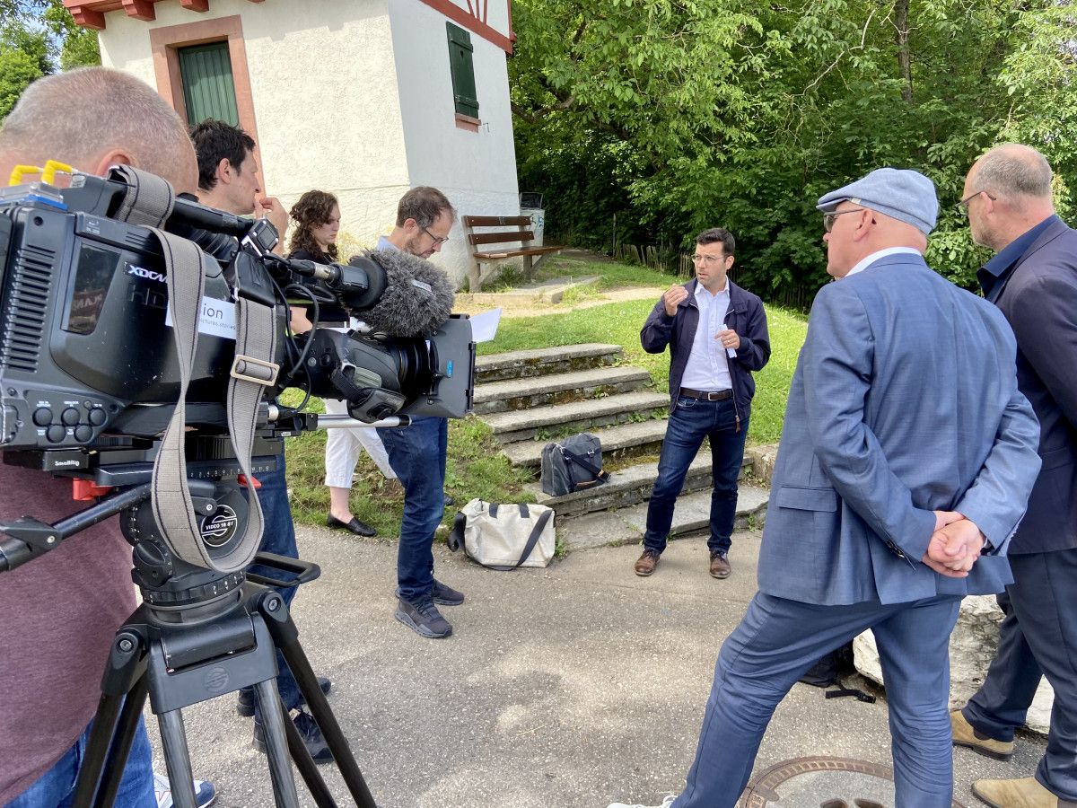Regierungsrat Isaac Reber führt die Medienschaffenden am Medienanlass zum Thema Solaranlagen in ISOS-A-Gebieten ausserhalb der Kernzone ins Thema ein (Quelle: BUZ)