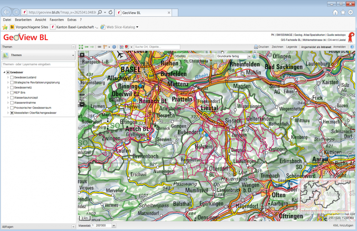 Die ganz grossen Gewässer in der Region, wie beispielsweise der Rhein in Rheinfelden und Basel, die Birs in Soyhières und Münchenstein, sowie die Ergolz in Liestal, werden schon seit Jahrzehnten vom Bund gemessen und sind online einsehbar.