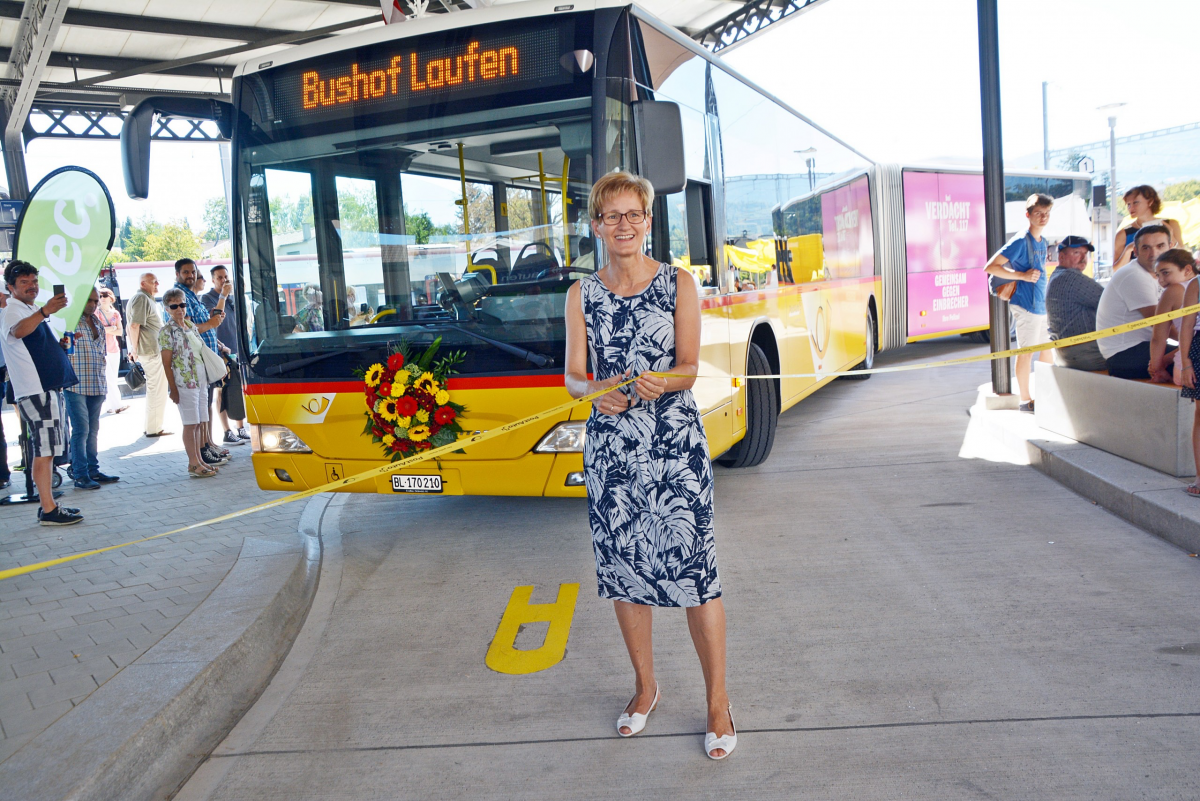 Die feierliche Eröffnung des Bushofs Laufen am 27. August 2016 lockte viele «Laufemerinnen und Laufemer» sowie Interessierte an den Bahnhof. Die Bevölkerung wollte sich vor Ort ein Bild des neuen Bushofs machen und sehen, wie das neue Verkehrskonzept am Bahnhof funktionieren wird.