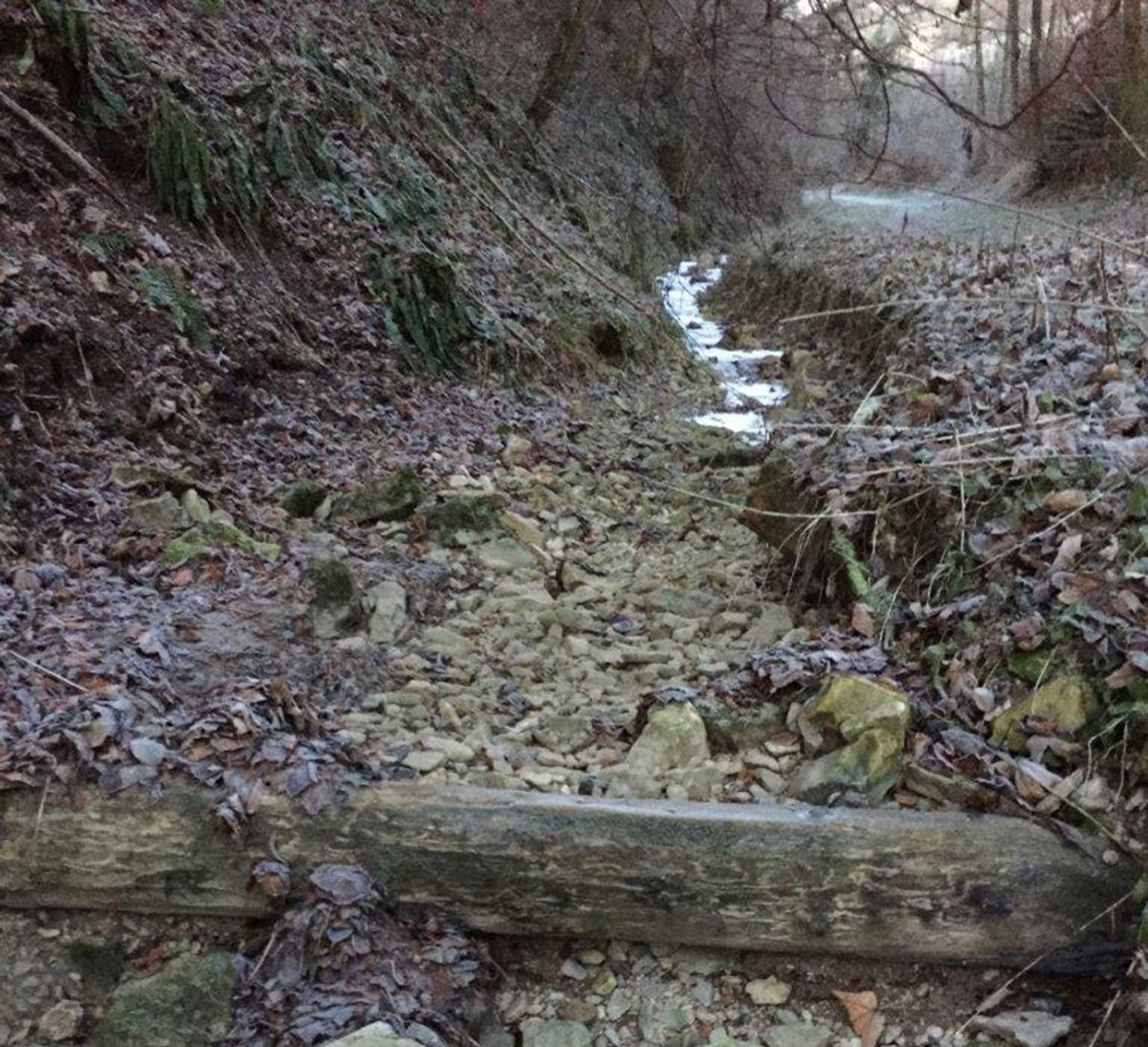 Auch die versteckten Gewässer wurden entdeckt. Teilweise eingedoltes Gallmattbächli in Hölstein. (Quelle: ARP)