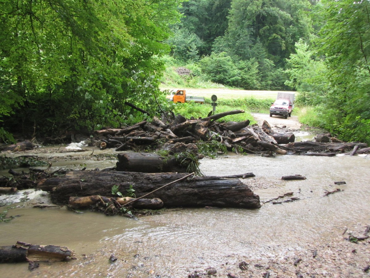 Bei der Ursachenanalyse und den Instandstellungsarbeiten an den Gewässern wurde festgestellt, dass nicht alleine die grossen Niederschlagsmengen Ursache für Schäden an Gebäuden, Kulturen und Infrastrukturen waren. Vielmehr wurden unzählige Durchlässe, Geschiebesammler, Überfahrten und Brücken bei den Ereignissen durch Schwemmholz verstopft und verursachten so grosse Rückstaus und Materialauflandungen in den Bächen, sodass diese über die Ufer traten.